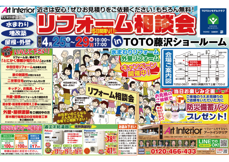 4月25日(土)26日(日)27日(月)28日(火)29日(水)リフォーム相談会 TOTO藤沢ショールーム
